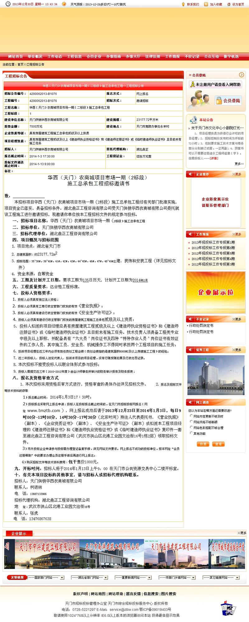 華西(天門)農(nóng)商場項目市場一期(二標段)施工總承包工程