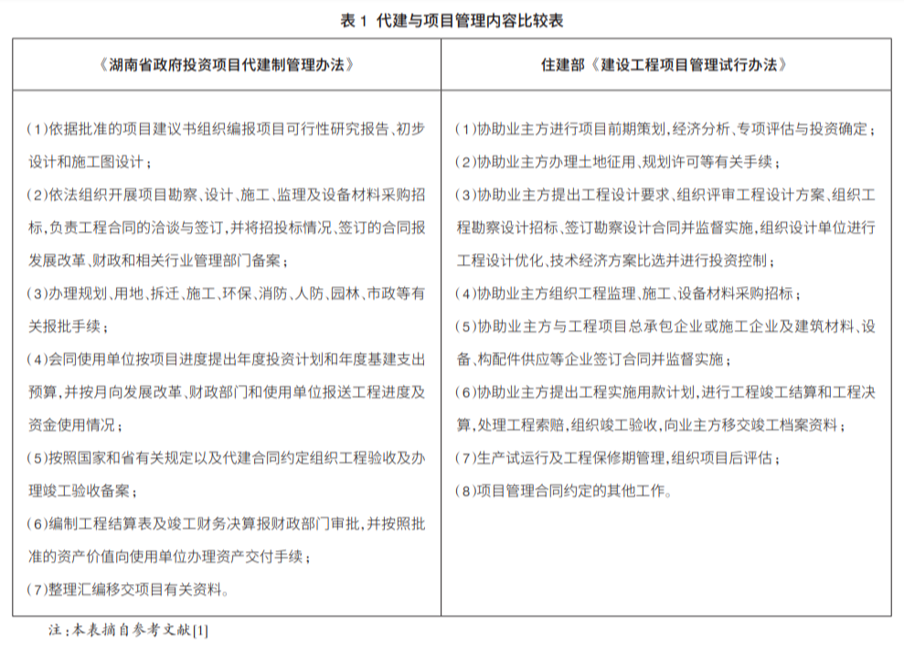 為貫徹2004年國(guó)務(wù)院發(fā)布的《關(guān)于投資體制改革的決定》精神,我國(guó)非經(jīng)營(yíng)性政府投資項(xiàng)目已逐步形成了“政府專業(yè)機(jī)構(gòu)代建、政府專業(yè)代建公司代建和社會(huì)代建單位代建”三種主要模式。2007年,湖南省對(duì)社會(huì)代建項(xiàng)目作出明確規(guī)定,代建服務(wù)的業(yè)主包含政府職能部門和項(xiàng)目使用方,體現(xiàn)了政府職能部門(發(fā)改和財(cái)政等部門)對(duì)非經(jīng)營(yíng)性政府投資項(xiàng)目的監(jiān)管,而且是可考核的工作。2007年住建部發(fā)布的《建設(shè)工程項(xiàng)目管理試行辦法》明確了為業(yè)主服務(wù)的項(xiàng)目管理內(nèi)容(表1),是以“協(xié)助”為主的服務(wù),這在當(dāng)時(shí)為推進(jìn)我國(guó)項(xiàng)目管理發(fā)展是必要的。目前,從效果考核的角度看,除了有部分是代理業(yè)主履行并可考核的工作外,大多的“協(xié)助”工作涉及到與業(yè)主的相互配合,服務(wù)效果難以考核。不能考核的工作要想得到業(yè)主和社會(huì)的認(rèn)可是困難的,這也是截至目前無(wú)法出臺(tái)全國(guó)性的工程項(xiàng)目管理服務(wù)酬金標(biāo)準(zhǔn)的原因之一。