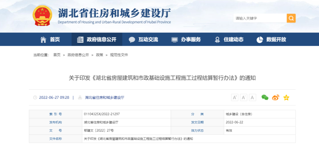 近日,湖北省住建廳聯(lián)合湖北省財(cái)政廳、湖北省公共資源交易監(jiān)督管理局印發(fā)了《湖北省房屋建筑和市政基礎(chǔ)設(shè)施工程施工過程結(jié)算暫行辦法》(以下簡稱《暫行辦法》),截至目前,全國已有近30省市區(qū)發(fā)文明確施工過程結(jié)算。