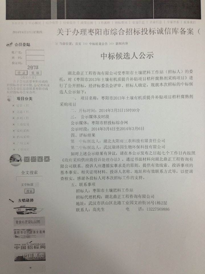 棗陽市2013年土壤有機質(zhì)提升補貼項目秸稈腐熟劑采購