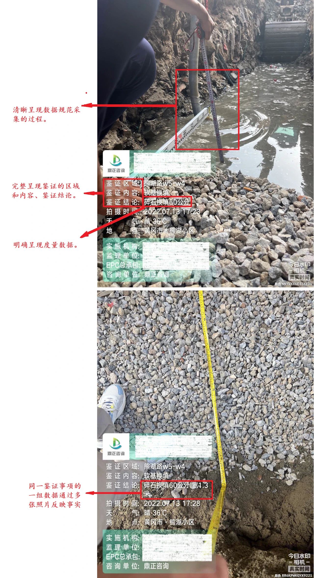 現(xiàn)場(chǎng)鑒證照片是再現(xiàn)工程現(xiàn)場(chǎng)施工質(zhì)量、安全、隱蔽工程等實(shí)際施工情況的重要證據(jù),是各項(xiàng)目施工階段工程監(jiān)理、全過(guò)程造價(jià)咨詢(xún)、結(jié)算審核以及解決工程糾紛提供有價(jià)值的支撐材料,是筑好每一個(gè)項(xiàng)目,夯實(shí)鼎正服務(wù)品質(zhì)的基石。