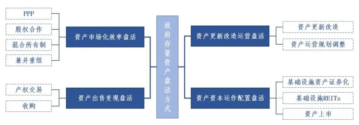 ? 資產(chǎn)市場化效率盤活,是指通過PPP模式、混合所有制改革、股權(quán)合作等市場化方式,引入并借助第三方的專業(yè)化技術(shù)、管理經(jīng)驗等,提高資產(chǎn)運(yùn)營效率與質(zhì)量,進(jìn)而盤活存量資產(chǎn)。