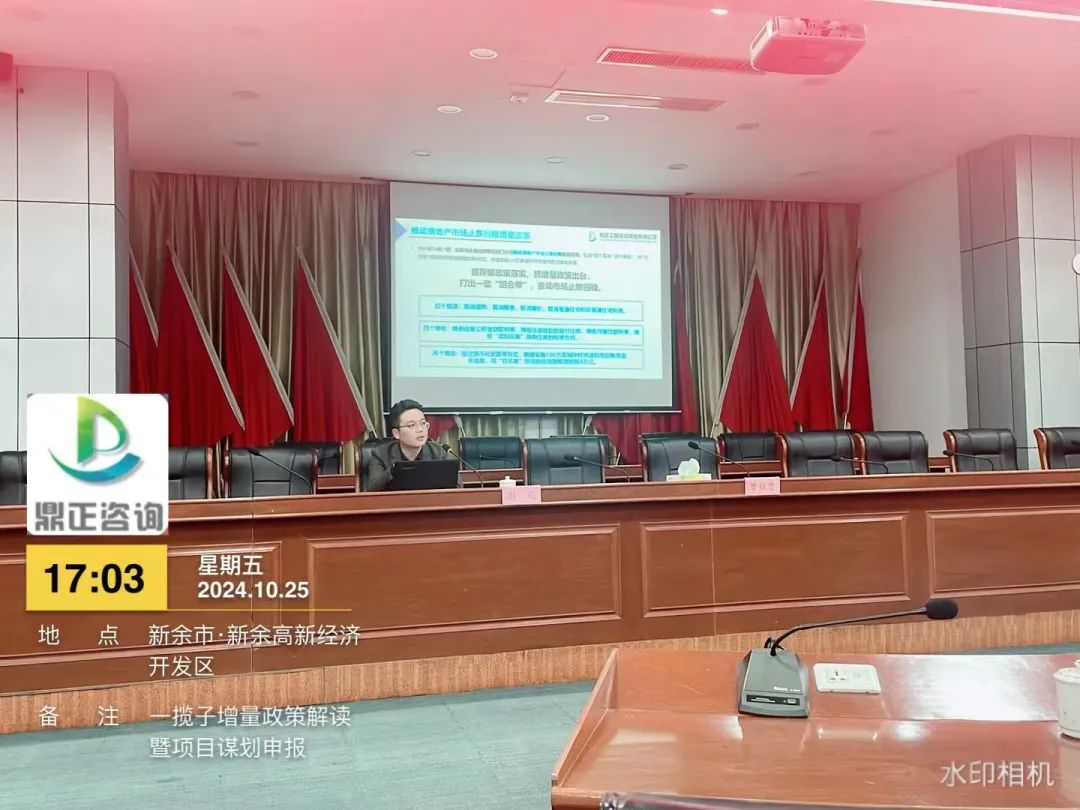 自9月下旬以來,國務(wù)院等多部門密集發(fā)布了一攬子增量政策,并引發(fā)了社會各界的廣泛關(guān)注。為搶抓增量政策窗口期,提升地方政府項目謀劃儲備質(zhì)量和項目謀劃水平,精準擴大有效投資。10月25日,鼎正副總經(jīng)理彭亮受邀為新余高新區(qū)政府作《一攬子增量政策解讀暨項目謀劃申報》的專題培訓(xùn)。