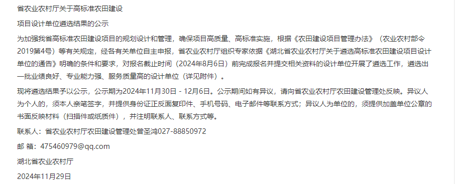 近日,鼎正成功入選湖北省農(nóng)業(yè)農(nóng)村廳高標(biāo)準(zhǔn)農(nóng)田建設(shè)項(xiàng)目遴選設(shè)計(jì)單位。