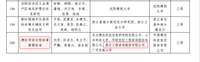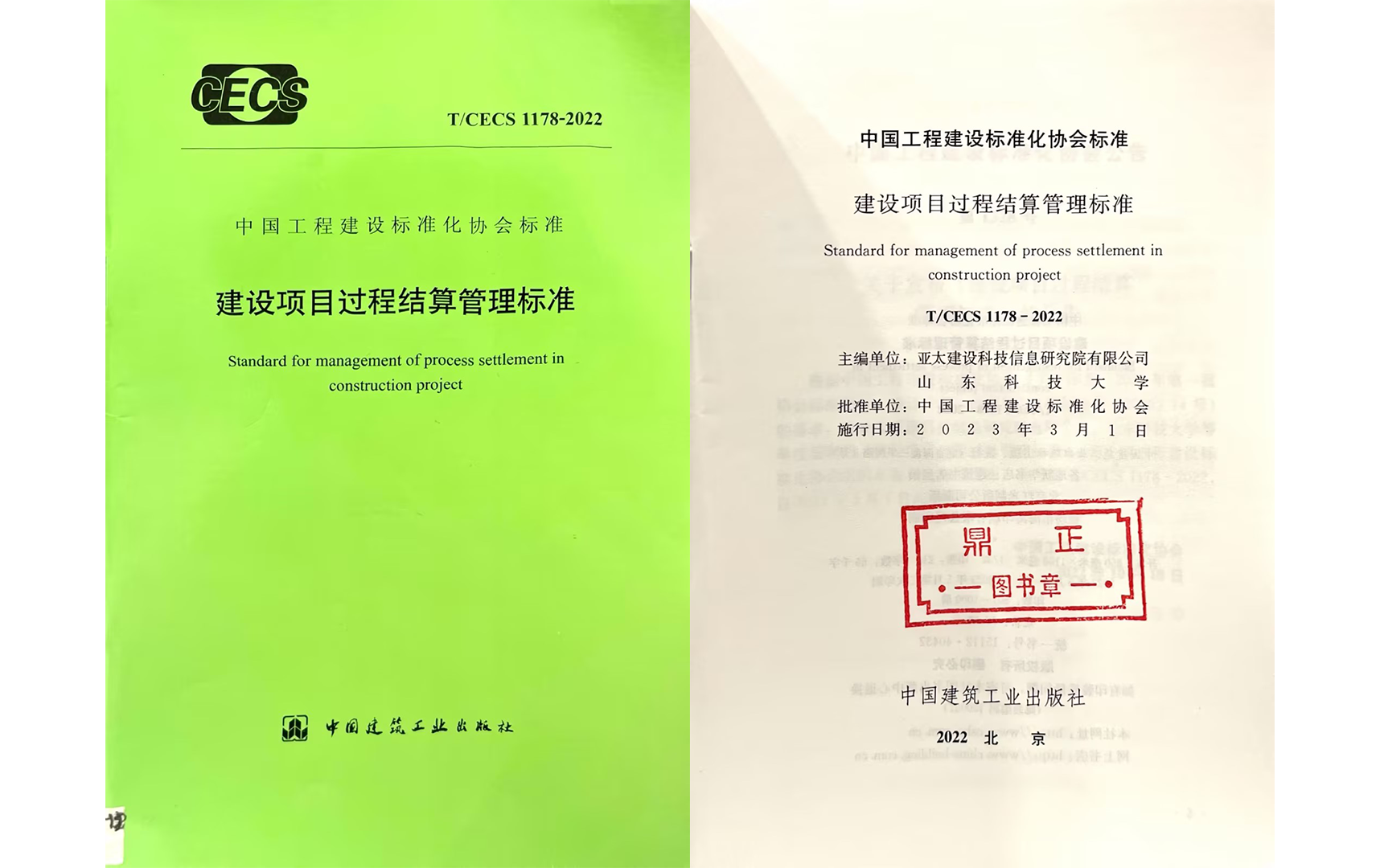 鼎正參與編制的《建設(shè)項目過程結(jié)算管理標(biāo)準(zhǔn)》(T/CECS 1178-2022)通過專業(yè)組和評審委員會的兩級評審,從700余個報送項目中脫穎而出,榮獲2024年度華夏建設(shè)科學(xué)技術(shù)獎三等獎。