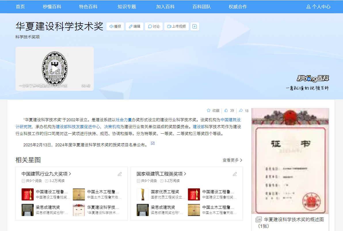 “華夏建設(shè)科學(xué)技術(shù)獎”于2002年設(shè)立,是中國建筑行業(yè)九大核心獎項之一,與魯班獎、詹天佑獎等齊名。該獎項經(jīng)國家科技部批準(zhǔn)設(shè)立,是建設(shè)系統(tǒng)以社會力量辦獎形式設(shè)立的全國建設(shè)行業(yè)最高科學(xué)技術(shù)獎項。其旨在獎勵在建設(shè)行業(yè)工作中有重要貢獻的組織和公民,貫徹科教興國戰(zhàn)略,促進科技成果向生產(chǎn)力轉(zhuǎn)化,推動科技進步、提升技術(shù)水平、培養(yǎng)科技人才,全面提升我國建設(shè)行業(yè)綜合科技創(chuàng)新水平。