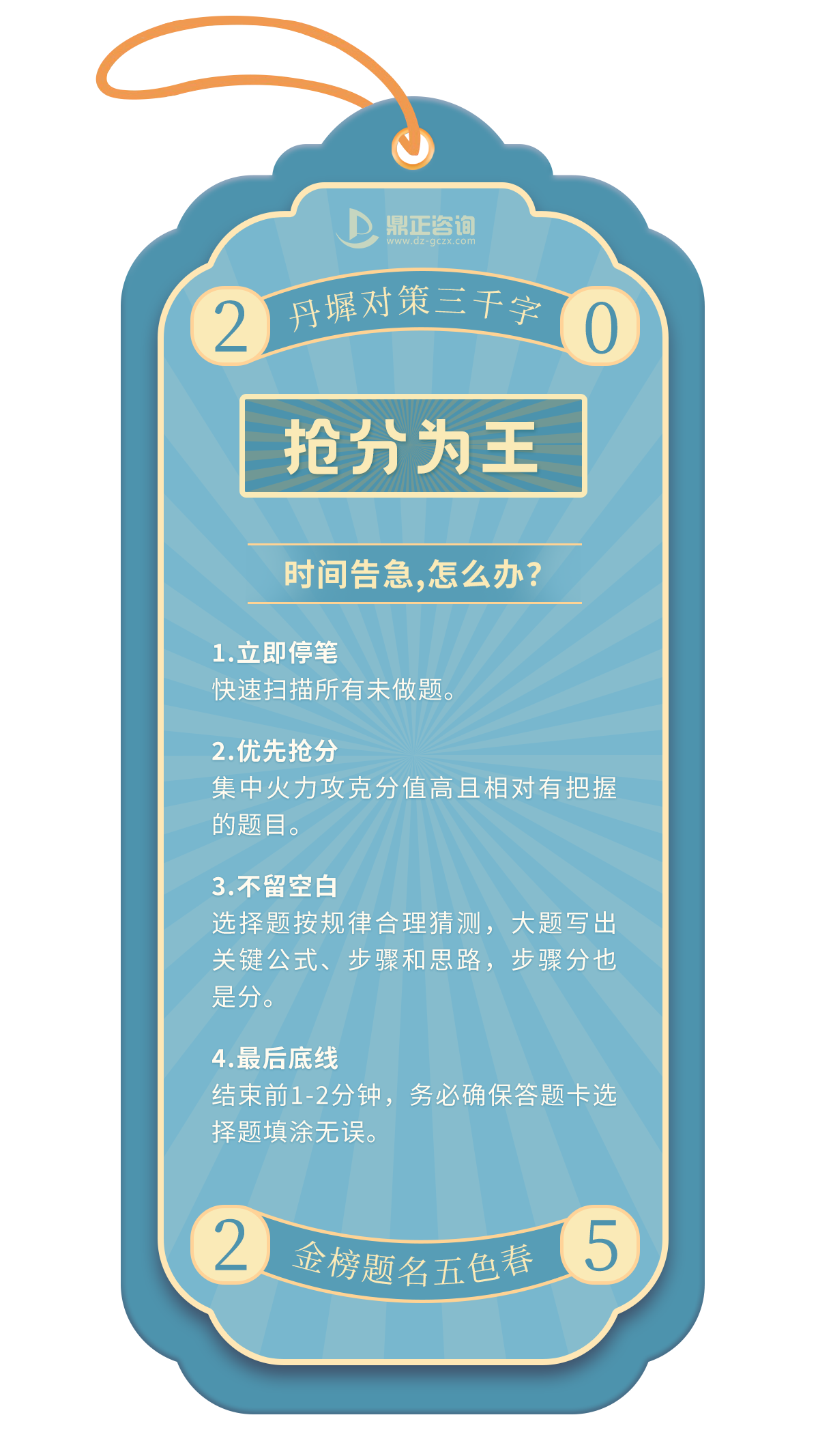 一年一度的高考即將拉開帷幕,全國(guó)1335萬(wàn)學(xué)子,即將統(tǒng)一奔赴人生的重要考場(chǎng),十年寒窗磨一劍,只為能夠在這一次迎接光明的未來(lái)!決戰(zhàn)時(shí)刻,除了扎實(shí)的知識(shí),從容應(yīng)對(duì)考場(chǎng)內(nèi)外的“小意外”同樣關(guān)鍵。今天,鼎正人特別為莘莘學(xué)子準(zhǔn)備了這份「高考應(yīng)急錦囊」,匯集常見突發(fā)狀況的實(shí)用應(yīng)對(duì)策略,助大家穩(wěn)住心態(tài),全力發(fā)揮,讓每一滴汗水都不負(fù)期待!