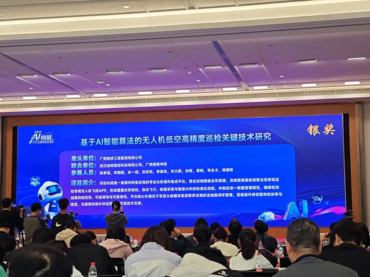 近日,2025年“AI賦能千行百業(yè)超級聯(lián)賽”交通行業(yè)創(chuàng)新大賽在南寧開賽。鼎正參股企業(yè)武漢珈鷹智能科技有限公司與廣西路橋工程集團(tuán)有限公司聯(lián)合組隊參賽,以綜合評分位列前三的優(yōu)異成績,榮獲2025年“AI賦能千行百業(yè)超級聯(lián)賽”交通行業(yè)創(chuàng)新大賽銀獎。