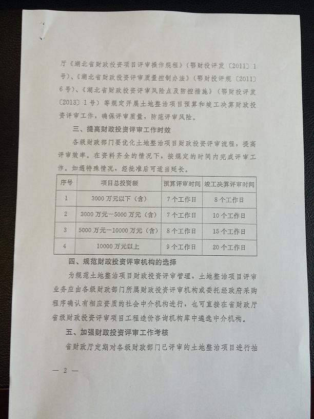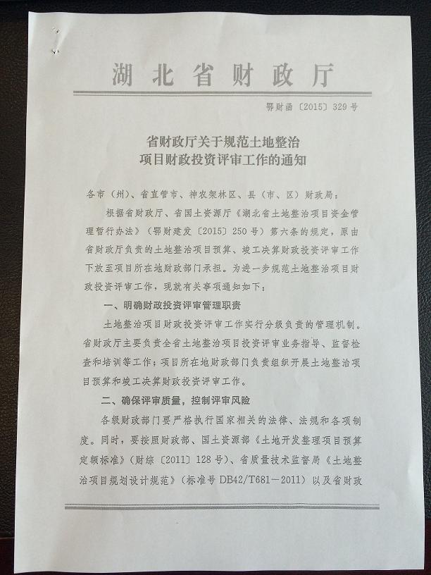 湖北省財政廳關(guān)于規(guī)范土地整治項(xiàng)目財政投資評審工作的通知