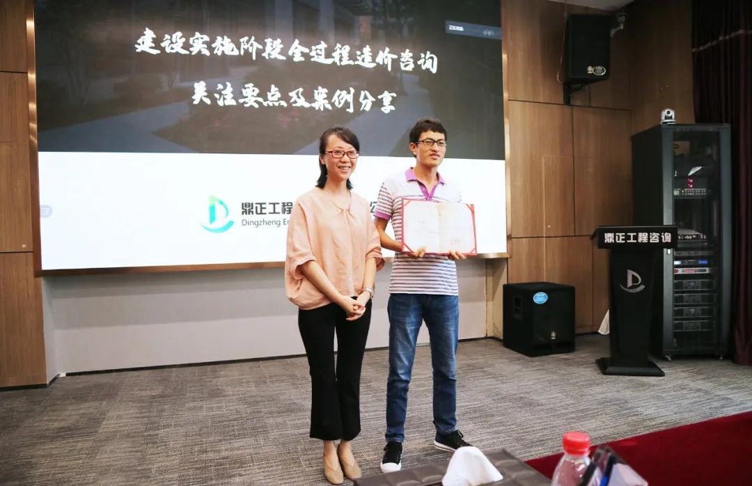 在交流會尾聲,鼎正技術(shù)總監(jiān)朱立冬、副總經(jīng)理毛迎霞為鼎正荊州分公司技術(shù)負(fù)責(zé)人李素娟、項(xiàng)目經(jīng)理沈雯頒發(fā)榮譽(yù)。